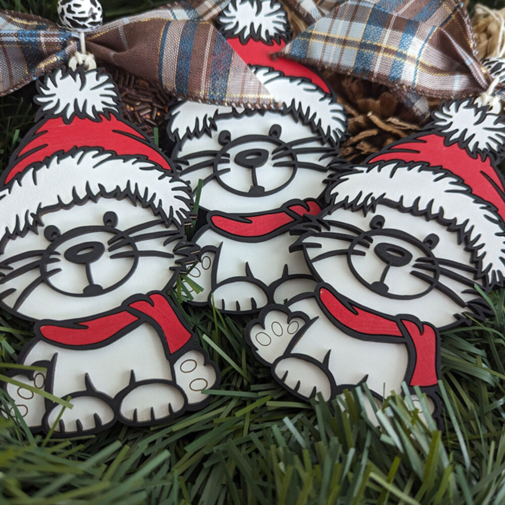 Our design file allows you to craft a beautifully layered Cat Ornament. The file includes a base layer and a detailed top layer that captures the whimsical charm of a kitty in a scarf and hat. You have the freedom to customize each layer with materials and colors of your choosing, offering a truly personalized creation.