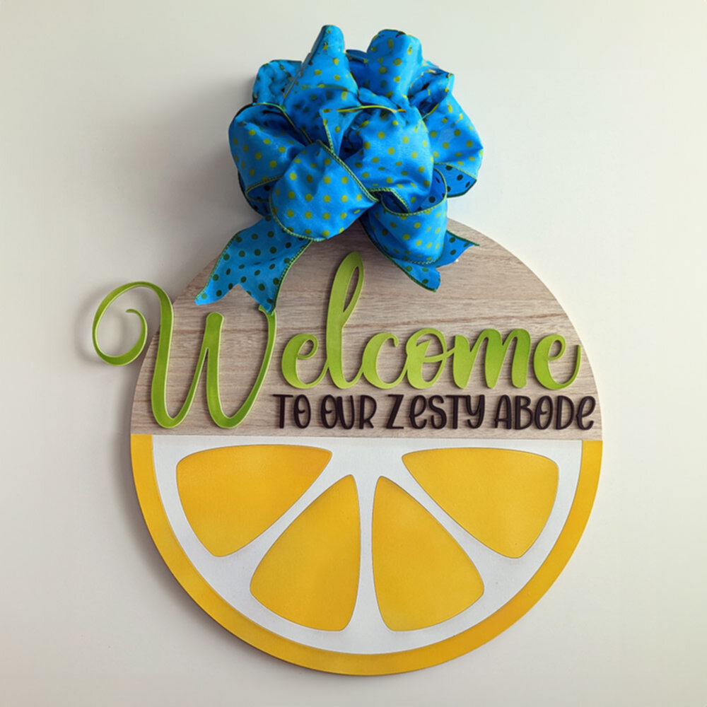 Our design file allows you to recreate the unique design of our Zesty Welcome Sign. The charming design features a lemon-shaped bottom half and a welcoming message on the top, creating a cheerful and vibrant accent for your living space. This contrasting design creates an intriguing visual interest, adding a touch of zest to any space.