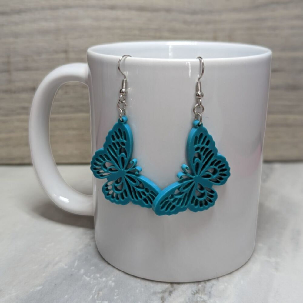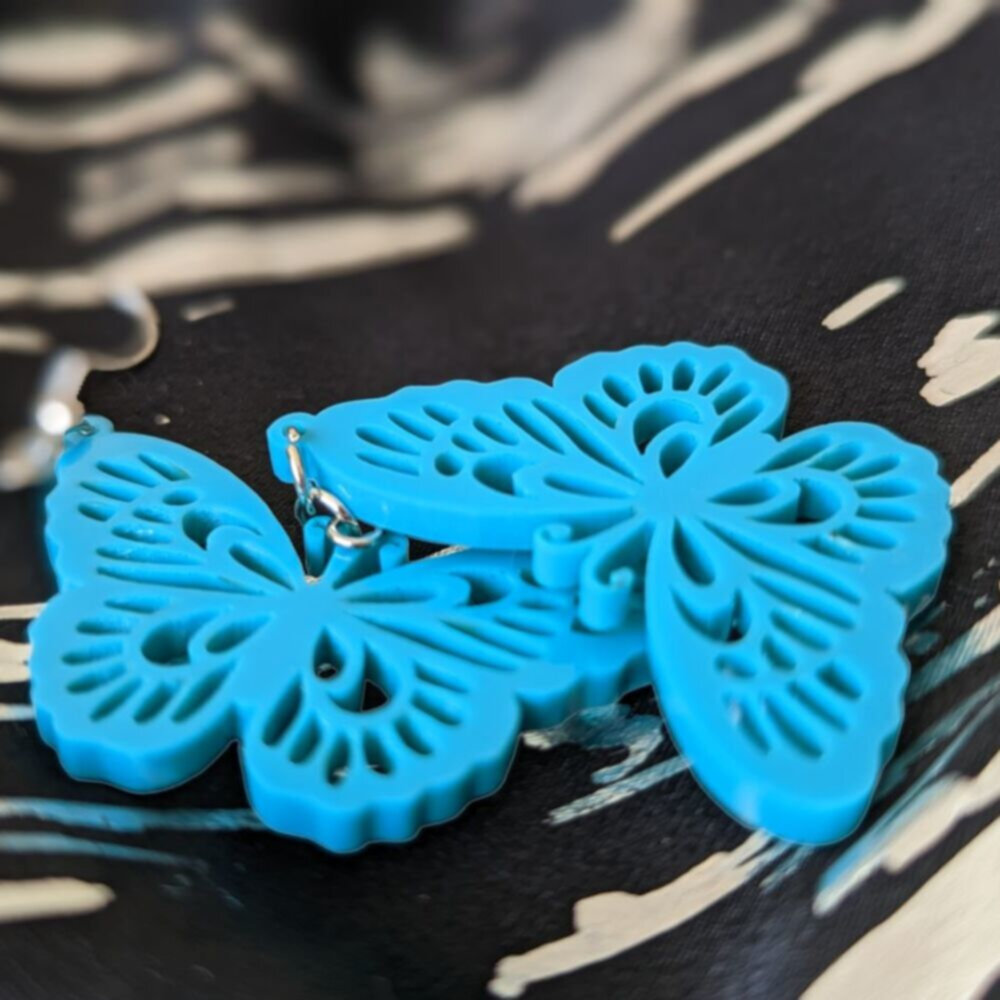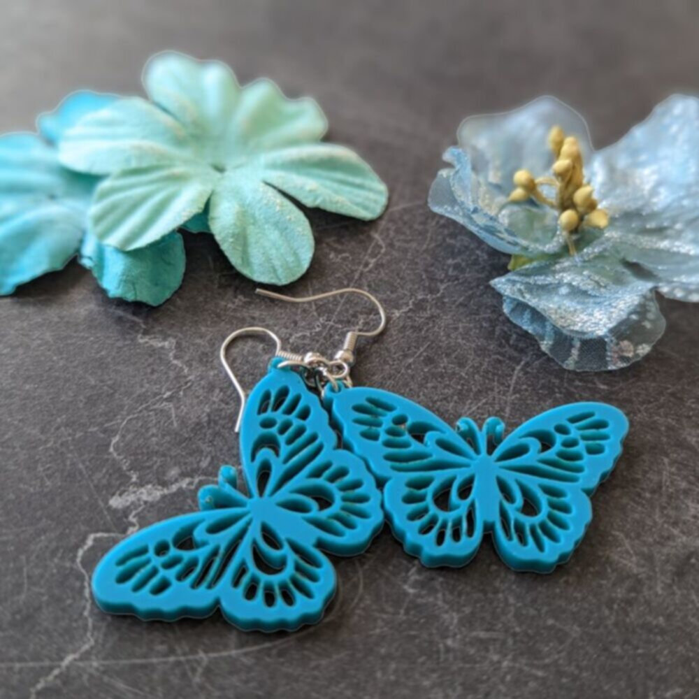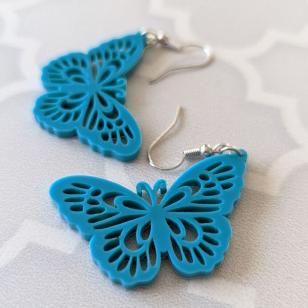 These gorgeous butterfly earrings are the perfect springtime accessory! Made from blue acrylic and nickel-free, these earrings are sure to brighten up any outfit. Super cute and lightweight, you won’t even feel like you’re wearing them. Plus, they make an amazing gift – who wouldn’t love this cheerful design? Get your pair now for some extra sparkle and style!