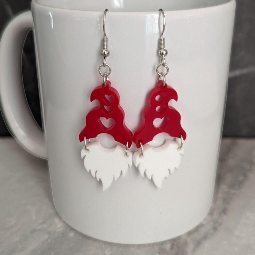Enchant your ears with these oh so special Gnomes. Crafted from white and red acrylic, these dainty little earrings are sure to turn heads while they dance around the ears. Plus, they’re nickel-free and ultra lightweight, so they won’t weigh you down throughout the day. Add a little magic and humor to your ensemble and be sure to show off your Gnomes.